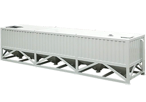水泥仓分为片状水泥仓、整体水泥仓、卧式水泥仓三种类型,水泥仓上下部各装有料位计,除尘系统; 为防止粉料起拱,在料仓锥部装有吹气破拱装置;可设计为片状水泥仓,运输方便;使用简单。